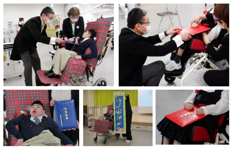 3月19日に、訪問教育学級みどりの里卒業証書授与式が挙行され、小学部一名、高等部一名の児童生徒が卒業を迎えました。