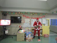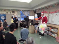 舎生も余興やプレゼントに大喜びで、余興に一緒に参加して楽しんでいました。プレゼントの発表では、期待で目を輝かせながら、発表のたびに「おぉ~」「やったぁ!」と大喜びでした。頂いたプレゼントは3学期より順次使えるようにしていきます。