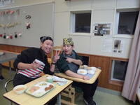 会食の部では、夕食の献立は舎生からのリクエストを募って作られた特別メニューでした。また、株式会社セコマ様よりクリスマスケーキを2箱の寄贈を受け、夕食後にみんなで食べました。舎生からは「おいしい」「生クリームがおいしかった」「苺がいい」と好評でした。