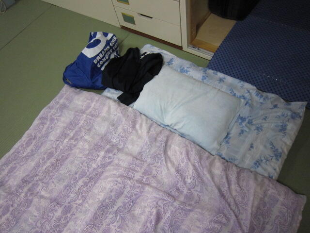 訓練当日(衣類が入った袋は、普段は就寝時枕元に置いてあります)